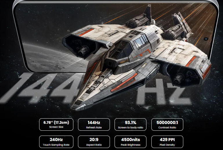 It has a 93.1 percent screen-to-body ratio plus 4,500 nits peak brightness, making it one of the brightest screens in this class. The display has Corning Gorilla Glass 7i protection on top and features SGS 5-star drop resistance.